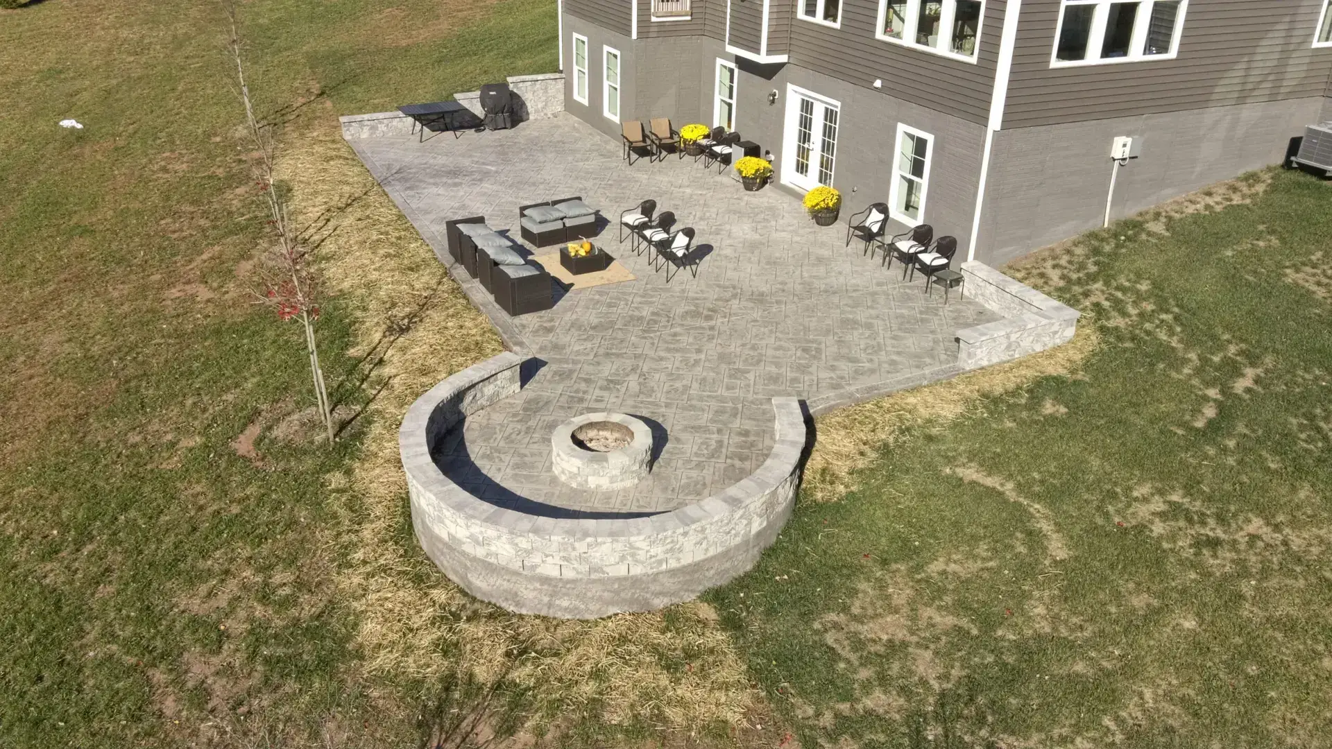 Stamped concrete is popular for homeowners wanting a stylish hardscape surface without individual paver seams. The patterns and colors give your patio or walkway the look of stone while providing a strong, continuous finish. It holds up well in Loudoun County and works for many backyard layouts.